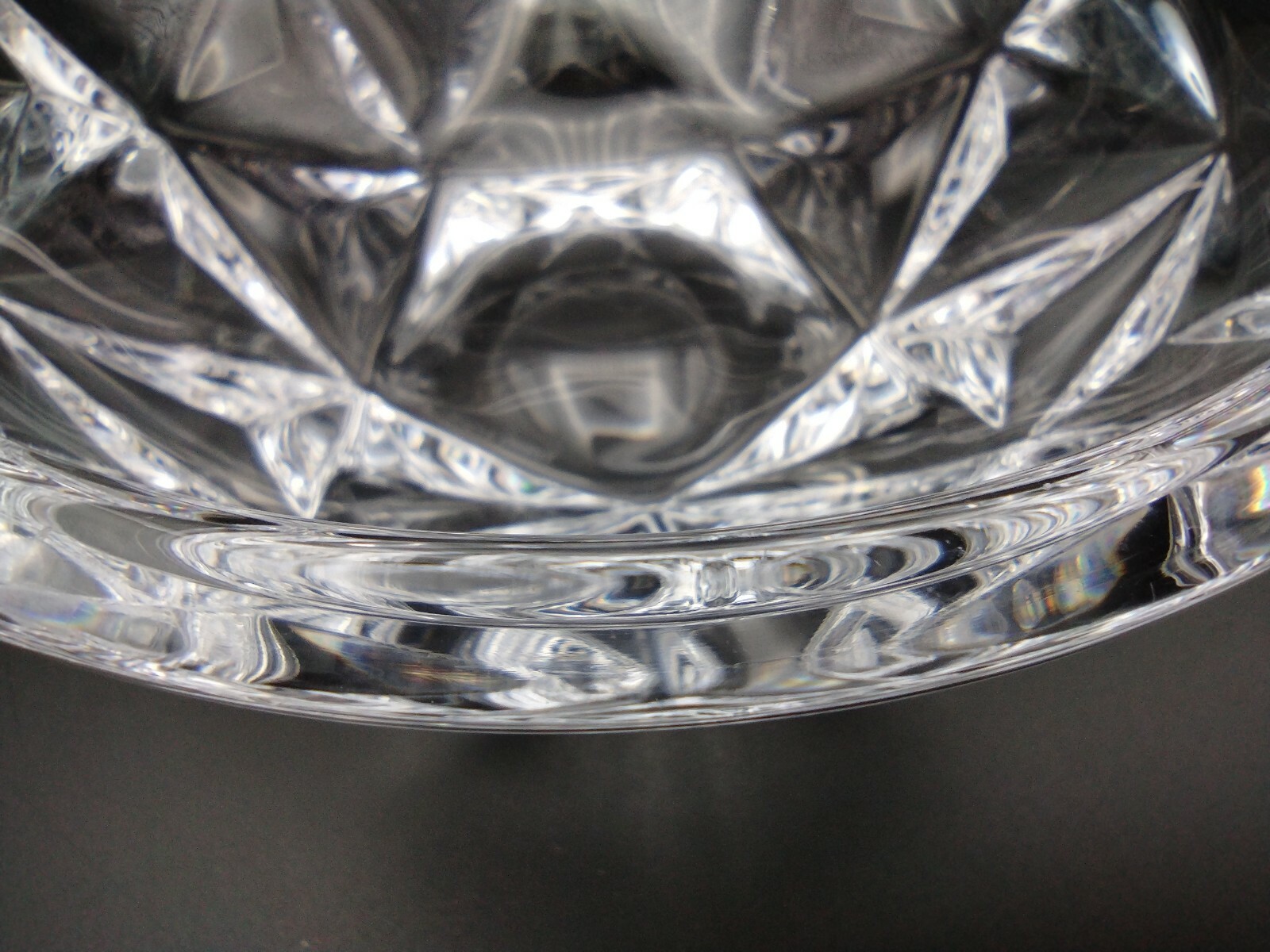 Tiffany & Co. Rock Cut Crystal Thick Heavy 6" Round Bowl Marked. This gorgeous piece of Tiffany & Co. crystal bowl is thick and heavy; it measures approximately 6" in diameter and 3" in height. The bottom is marked and has some light scratches on the bottom from us (please see all photographs as they are part of the description). It is used, in very good condition with no chips or cracks. Shipped with USPS Ground Mail. UPsC