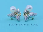 TIFFANY & CO SCHLUMBERGER DIAMOND PEARL 18K YELLOW GOLD EARRINGS SIZE:18MM WEIGHT:15.5 GRAMS SKU:12-24/7 100% AUTHENTIC WITH POUCH
