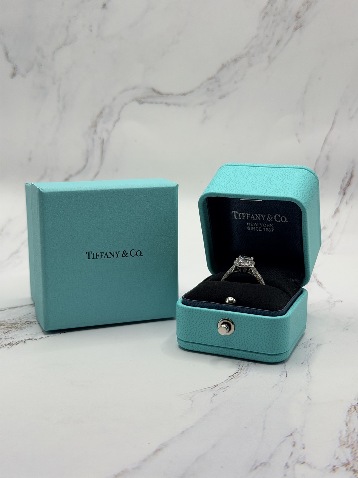 **Title:** Tiffany & Co. Classic Engagement Ring Box ***RING NOT INCLUDED*** ***PURCHASE ONLY COMES WITH RING BOX*** **Overview:** Experience the epitome of luxury and romance with the Tiffany & Co. engagement ring box, a timeless symbol of love and commitment. This box is not just packaging; it's a promise of quality and elegance, instantly recognizable and cherished worldwide. **Features:** - **Material:** Crafted with the finest materials, featuring a plush interior to protect and showcase the ring within. - **Design:** The famous Tiffany presentation that's as memorable as the jewelry it holds. - **Dimensions:** Perfectly sized to house your precious Tiffany engagement ring, ensuring it remains secure and displayed beautifully. **Why You Should Buy:** Owning a Tiffany engagement ring box means more than just owning a piece of jewelry packaging; it's about the joy of the moment it represents. Whether used for a proposal or as a treasured keepsake, this box is a key part of the celebrated Tiffany experience. **Ideal For:** - Those planning a memorable proposal with a touch of iconic elegance. - Collectors and enthusiasts of Tiffany & Co.'s rich heritage. - Anyone looking to add a sophisticated touch to their jewelry presentation. **Additional Information:** The Tiffany & Co. ring box is an integral part of their engagement experience, designed not only to be aesthetically pleasing but also to symbolize love and commitment. The blue color and the quality of the box reflect Tiffany's legacy of craftsmanship and attention to detail.