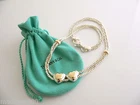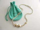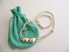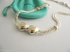 Overview: Do you know which items made Tiffany a world renowned company? You just stumbled upon one of them! Offered for sale is a wonderful vintage and very rare Tiffany and Co. Sterling Silver and 18K Gold Double Rope Sliding Hearts necklace. The piece is made from solid and substantial Tiffany silver, yet has a very delicate and feminine feel to it. The necklace is very unique - hard to find and come by, so grab it while you have the chance! It is very pretty worn on its own, but would also work very well with other pieces of jewelry that you already own. It is a piece that pretty much goes with anything you can even put on ... Great piece to wear to work, or for just going to dinner with friends in jeans or a pretty dress. The necklace may be vintage but style is definitely classic Tiffany, and the details of this piece is just amazing. It is very comfortable to wear, and is in excellent condition. A great Tiffany piece to start or add to your collection. The necklace is fully hallmarked and guaranteed to be 100% authentic. It will come with its Tiffany pouch as shown! Perfect and ready for gifting! Wonderful present for yourself or anyone you love! Will surely delight! Particulars: Size & Measurements: The necklace is approximately 16.5 inches. Metal & Hallmarks: T & Co. / Italy / 925 Solid 925 sterling silver and 18K Gold Please check out my other unique and interesting Tiffany items on sale.