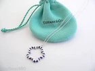 Overview: Everyone needs a signature Tiffany piece! Here is the perfect one just for you - and it is quite a rare and hard to find piece. Offered for sale is a wonderful Tiffany & Co. Picasso Silver & Blue Enamel Striped Flower necklace. The piece is crafted from bright Tiffany silver, yet retains its feminine and delicate feel. Hanging from its sterling silver Tiffany curb chain is a very pretty and unique Flower pendant/charm. Just gorgeous! It is a wonderful necklace that fits a lifestyle on the go, and can be worn to almost any occasion. The piece is simple, elegant, and classic all rolled into one. Imagine it with your professional office attire ... Now imagine it with jeans or weekend wear ... Perfect! The necklace is very comfortable to wear, and is in excellent condition. It is one of THE classic Tiffany piece to start or add to your collection. As always, the item is fully hallmarked and guaranteed to be 100% authentic. It will come with its Tiffany pouch as shown! Perfect and ready for gifting! Wonderful present for yourself or anyone you love! Will surely delight! Particulars: Size & Measurements: The necklace is 18.1 inches from end to end. The charm is approx. 0.95 inches. Metal & Hallmarks: T & Co. / Paloma Picasso / 925 Solid 925 sterling silver Please check out my other unique and interesting Tiffany items on sale.