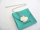 Overview: Offered for sale is a wonderful Tiffany classic. Whether you are just starting your Tiffany collection or are thinking of adding another piece, this one is perfect for you. Tiffany & Co.'s Sterling Silver Double Hearts necklace is a Tiffany classic that will never go out of style. It will most certainly be a piece that you will turn to over and over again, so it is great value for your money! It is a wonderful necklace that fits a lifestyle on the go -- the necklace can be worn to almost any occasion! It is simple, elegant, and classic all rolled into one necklace. Imagine the piece with your professional office attire ... Now imagine it with jeans or weekend wear ... Perfect! As always, the item is fully hallmarked and guaranteed to be 100% authentic. It will come with its Tiffany pouch as shown! Perfect and ready for gifting! Wonderful present for yourself or anyone you love! Will surely delight! Particulars: Size & Measurements: The chain is 18 inches from end to end. The larger heart is approx. 0.95 inch at its widest ends. Metal & Hallmarks: Tiffany & Co. / 925 Solid 925 sterling silver Please check out my other unique and interesting Tiffany items on sale.
