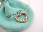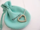 Overview: Offered for sale is a very rare, wonderful, and gorgeous Tiffany & Co. Silver & Gold Heart Twisted Rope necklace. Definitely a Tiffany piece that you will get your money's value for. It works perfectly with pretty much any attire your put on, AND is a great statement piece. Hanging from its 19.6 inch Tiffany sterling silver curb chain is a very pretty Gold / Silver Twisted Rope Heart Pendant. The Heart pendant is removable from the chain and can this be used as a charm for your other pieces as well! Wonderful and elegant way to say "I love you" without ever saying a word. Believe me ... she will know! :) And because it is two tone, the piece will complement pretty much any other piece of jewelry you already own! It is the perfect necklace that fits a lifestyle on the go -- the necklace can be worn to pretty much any occasion! It is simple, elegant, and classic all rolled into one necklace. Imagine wearing the necklace with your office attire... now imagine it with jeans or weekend wear ... Perfect anytime! The item is very comfortable to wear, and is in excellent condition. No longer in production, it is perfect for the collector. It is a perfect Tiffany piece to start or add to your collection. As always, the item is hallmarked and is guaranteed to be 100% authentic. Wonderful present for yourself or anyone you love! Will surely delight! It will come with its Tiffany pouch as shown, and is ready for gifting! Particulars: Size & Measurements: The necklace is 19.6 inches from end to end. The heart charm pendant is 0.85 inches at its widest ends. Metal & Hallmarks: Tiffany & Co. / 925 (on heart charm) Tiffany & Co / 925 (on chain clasp) Solid 925 sterling silver Please check out my other unique and interesting Tiffany items on sale.