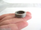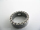 Overview: Offered for sale is a very pretty and mint Tiffany and Co. sterling silver Oxidized mesh ring. A very nice, bold piece that will certainly be a conversation starter! Adds just that touch of Tiffany style to any outfit! It is very versatile, comfortable to wear, and is in excellent / mint condition. Will work well with almost any outfit you put on - imagine the piece with a nice sundress ... now imagine wearing it with jeans and a crisp white shirt ... Perfection! Makes a great stacking ring as well! Great piece to start or add to your Tiffany collection. The ring is fully hallmarked and is guaranteed to be 100% authentic. Wonderful present for yourself or anyone you love! Will surely delight! Particulars: Size & Measurements: The ring is a size 5 Metal & Hallmarks: T & Co. / 925 Solid 925 sterling silver Please check out my other unique and interesting Tiffany items on sale.