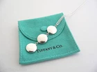Overview: Offered for sale is a wonderful Tiffany classic. Whether you are just starting your Tiffany collection or are thinking of adding another piece, this one is a perfect for you. Tiffany & Co.'s Sterling Silver Triple Disc Dangling necklace is a Tiffany classic that will never go out of style. The piece makes a statement in its own subtle/simple way. Looks great with an open neck shirt or a dark turtleneck come winter time! (Not sure I want to think of this too much :)) It will most certainly be a piece that you will turn to over and over again, making it great value for your money. It is a wonderful necklace that fits a lifestyle on the go -- the necklace can be worn to almost any occasion! It is simple, elegant, and classic all rolled into one necklace. Imagine the piece with your professional office attire ... Now imagine it with jeans or weekend wear ... Very cool in every way! Looks just like a piece of modern art hanging from your neck - without the huge price tag of an art piece :) The item is very comfortable to wear, and is in excellent condition. As always, the item is fully hallmarked and guaranteed to be 100% authentic. It will come with its Tiffany pouch as shown! Perfect and ready for gifting! Wonderful present for yourself or anyone you love! Will surely delight! Particulars: Size & Measurements: The chain is 16.25 inches from end to end. The dangling circle drop pendant is approx 1.5 inches. Metal & Hallmarks: T & Co. / 925 / Italy Solid 925 sterling silver Please check out my other unique and interesting Tiffany items on sale.
