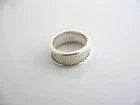 Overview: Offered for sale is a very pretty and mint Tiffany and Co. sterling silver narrow mesh ring. A very nice, bold piece that will certainly be a conversation starter! It is very versatile, comfortable to wear, and is in very good condition. Will work well with almost any outfit you put on - imagine the piece with a nice sundress ... now imagine wearing it with jeans and a crisp white shirt ... Perfection! Makes a great stacking ring as well! Great piece to start or add to your Tiffany collection. The ring is fully hallmarked and is guaranteed to be 100% authentic. Wonderful present for yourself or anyone you love! Will surely delight! Particulars: Size & Measurements: The ring is a size 5 Metal & Hallmarks: T & Co. / 925 Solid 925 sterling silver Please check out my other unique and interesting Tiffany items on sale.