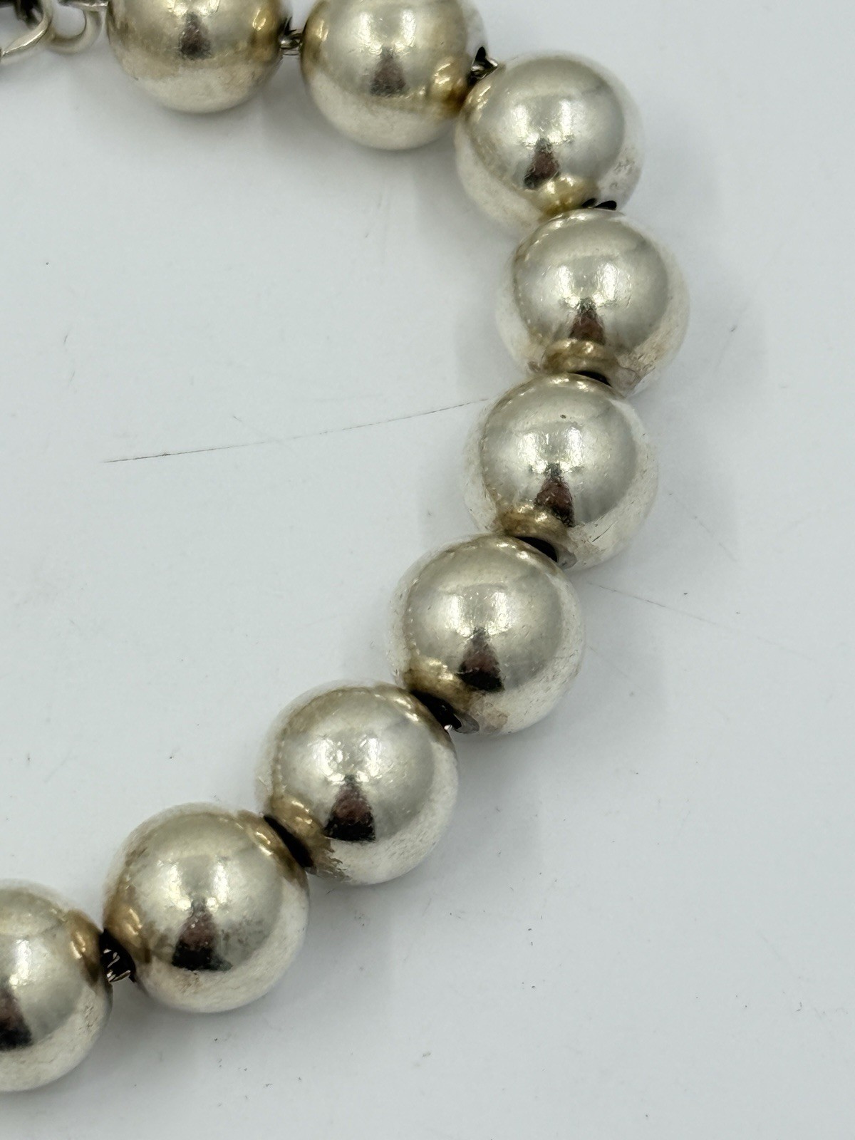 Authentic Tiffany & Co Sterling Silver Ball Bead Bracelet 18g 10mm It measures approximately 7.5” long and approximately 6-3/8” inside.