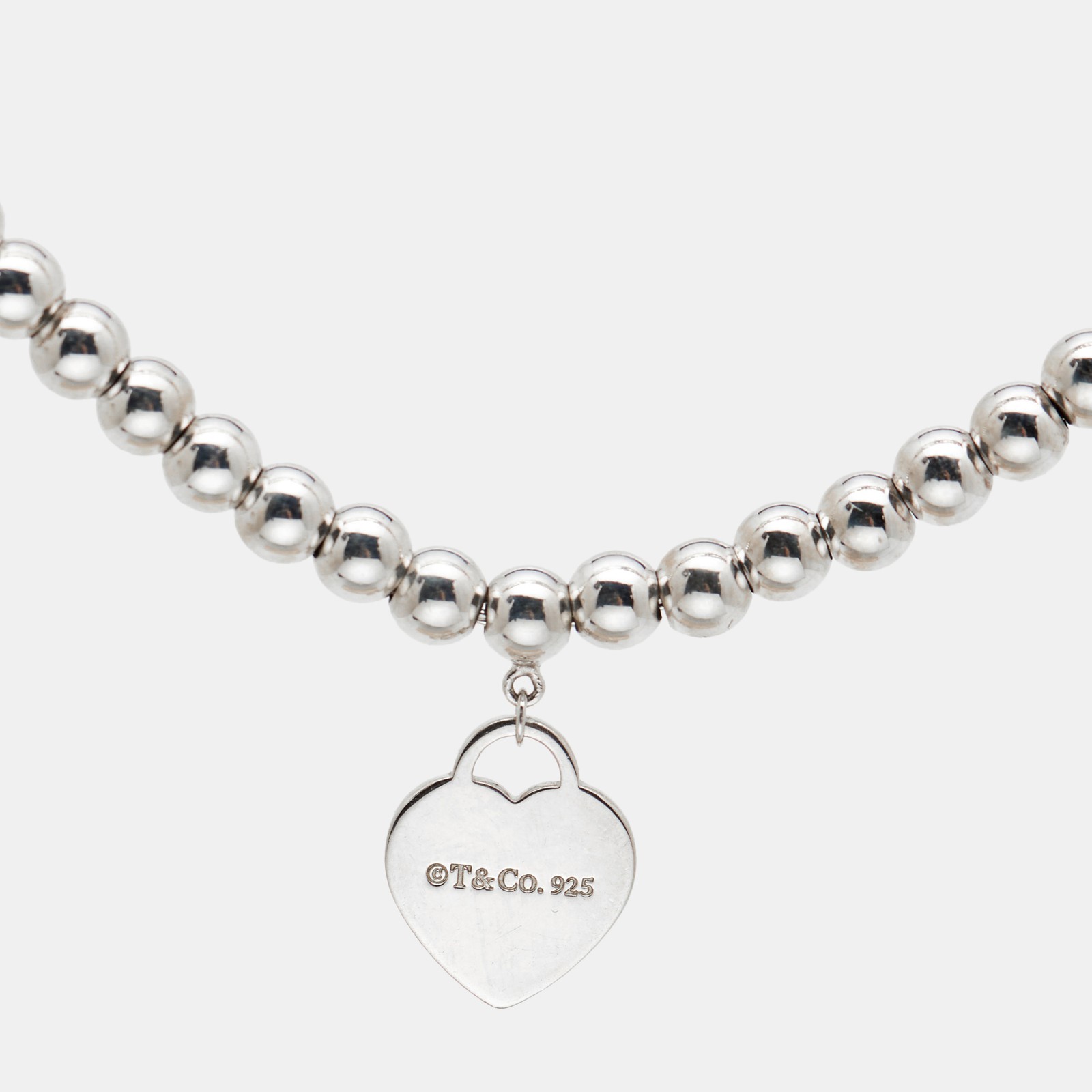 A Tiffany icon reinterpreted in sterling silver beads, this bracelet features the signature “Return to Tiffany” heart tag, engraved and instantly recognizable. Designed to sit lightly on the wrist with a subtle nod to nostalgia.Certified by The Luxury Closet - This item has gone through a detailed authentication process overseen by our experts. We offer a lifetime guarantee of authenticity on all our items. Import duties, taxes and charges are not included in the item price. These charges are the buyers responsibility. Please check with your country’s customs office to determine what these additional cost will be prior to buying. Our eBay Store About Us Contact Us Add to Favorite Sellers Tiffany & Co. Return to Tiffany Heart Tag Sterling Silver Beads Bracelet $211.2 A Tiffany icon reinterpreted in sterling silver beads, this bracelet features the signature “Return to Tiffany” heart tag, engraved and instantly recognizable. Designed to sit lightly on the wrist with a subtle nod to nostalgia. Product Details Brand Color Silver Dimensions Material Size Outsole Width Outsole Length Heel Height Includes Certified by The Luxury Closet This item has gone through a detailed authentication process overseen by our experts. We offer a lifetime guarantee of authenticity on all our items. How We Check The in-house team of experts at The Luxury Closet is highly trained to verify the authenticity and the condition of the luxury products. They ensure that only 100% authentic items are put on sale.The evaluation process is unique with its own mix of assessment criteria and differs according to the category. Each item is evaluated based on the following combination of hallmarks, hardware, stitching, symmetry, material, craftsmanship, stamping, codes, hologram stickers, and packaging. Our authenticators also check if the items have been modified or amended (e.g., aftermarket diamonds, replaced batteries, repaired bags, etc.) International Buyers Import duties, taxes and charges are not included in the item price. These charges are the buyers responsibility. Please check with your country’s customs office to determine what these additional cost will be prior to buying.