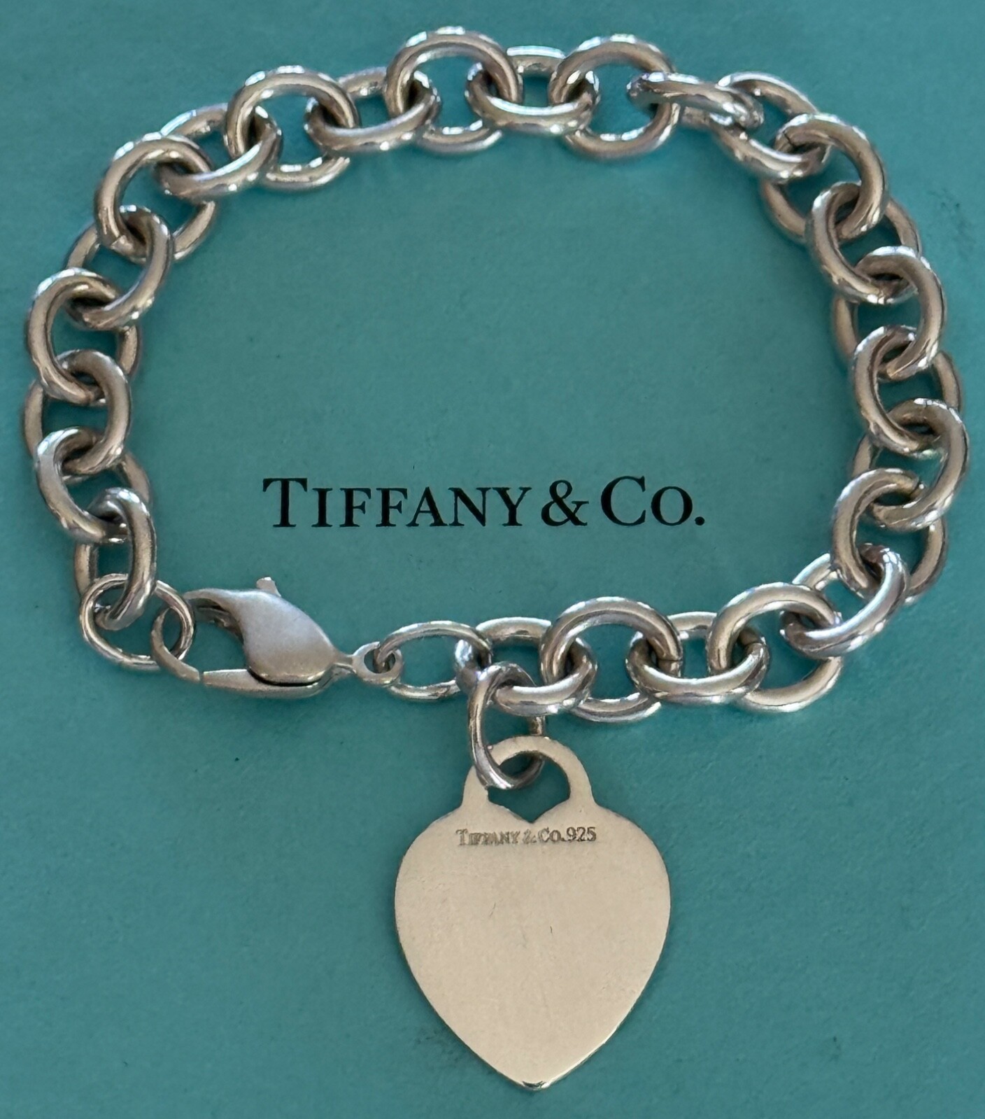 Tiffany & Co. Heart Tag Bracelet. Sterling Silver 925. Measures approx. 7 3/4". No box.With pouch. All Our Tiffany & Co. Items are Authentic.