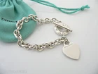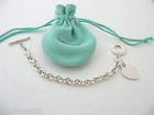 Overview: Offered for sale is a wonderful and gorgeous Tiffany & Co. Sterling Silver Heart Toggle bracelet. Definitely a Tiffany piece that you will get your money's value for. It works perfectly with pretty much any attire your put on, AND is a great statement piece. The chain for this specific bracelet is quite substantial, and the pretty Tiffany heart just goes perfectly with it. It is the perfect bracelet that fits a lifestyle on the go -- can be worn to pretty much any occasion! It is simple, elegant, and classic all rolled into one. Imagine wearing the piece with your office attire... now imagine it with jeans or weekend wear ... Perfect anytime! The heart is unengraved, so it is ready for your personalization, if you choose to. It is in pre-owned condition and does have signs of use (priced in accordingly). It is a perfect Tiffany piece to start or add to your collection. As always, the item is hallmarked and is guaranteed to be 100% authentic. It will come with its Tiffany pouch as shown! Perfect and read for gifting! Wonderful present for yourself or anyone you love! Will surely delight! Particulars: Size & Measurements: The bracelet is approx. 8 inches from end to end. Metal & Hallmarks: Tiffany & Co. / 925 Solid 925 sterling silver Please check out my other unique and interesting Tiffany items on sale.