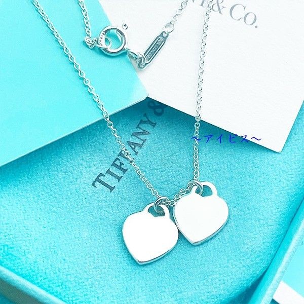 Tiffany Double Heart Necklace with Blue Diamonds - Brand New & Gift Wrapped