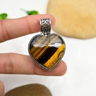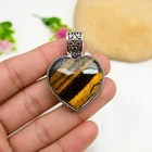 Tiger Eye Gemstone Heart Pendant 925 Sterling Silver Handmade Jewelry Love Gift