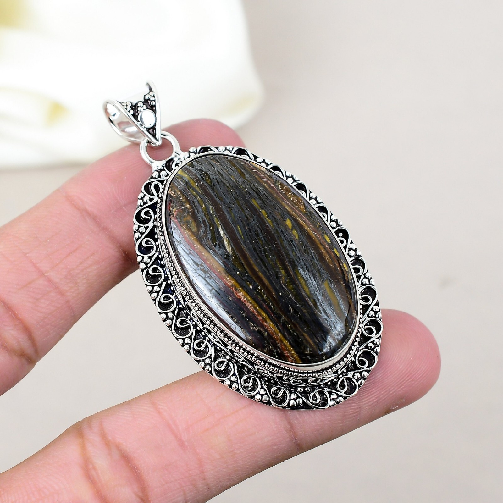 Tiger Eye Gemstone 925 Sterling Silver Statement Pendant for Bridal Gifts