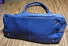 This Tignanello shoulder purse is crafted from blue leather with a pebbled finish, featuring a vibrant and colorful lining in brown. The medium-sized bag has a solid pattern with a playful character of pebbles, making it a stylish Y2K-inspired accessory for women. It is designed with a magnetic snap closure, silver hardware accents, and a comfortable leather handle in blue, making it a chic and practical choice for everyday use. If you have any questions, please feel free to contact me on eBay messenger! Very motivated seller and will accept any respectable counter offer sent in my direction! Thank you so much for reading this post from Foxy Stang Upcycler Store! 🦊Have A Wonderful Foxy Stang Day!!!!🦊