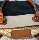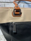 Very nice shoulder bag in black, cream, and brown pebbled leather. Excellent condition. The bottom studs have a little wear to them. Otherwise clean inside and out. Please refer to the pictures for more details. I’m happy to answer your questions to the best of my knowledge. Thank you for watching!