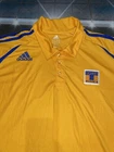 Show your support for Tigres UANL with this preowned Adidas polo shirt in size XL. The vibrant yellow color is sure to make you stand out in the crowd while cheering on your favorite soccer team. This shirt is perfect for any fan looking to add to their collection of sports memorabilia. The shirt is in great condition and has been well-maintained, ensuring that it will last for years to come. Whether you're at the stadium or watching the game from home, this polo shirt is a must-have for any Tigres UANL fan.