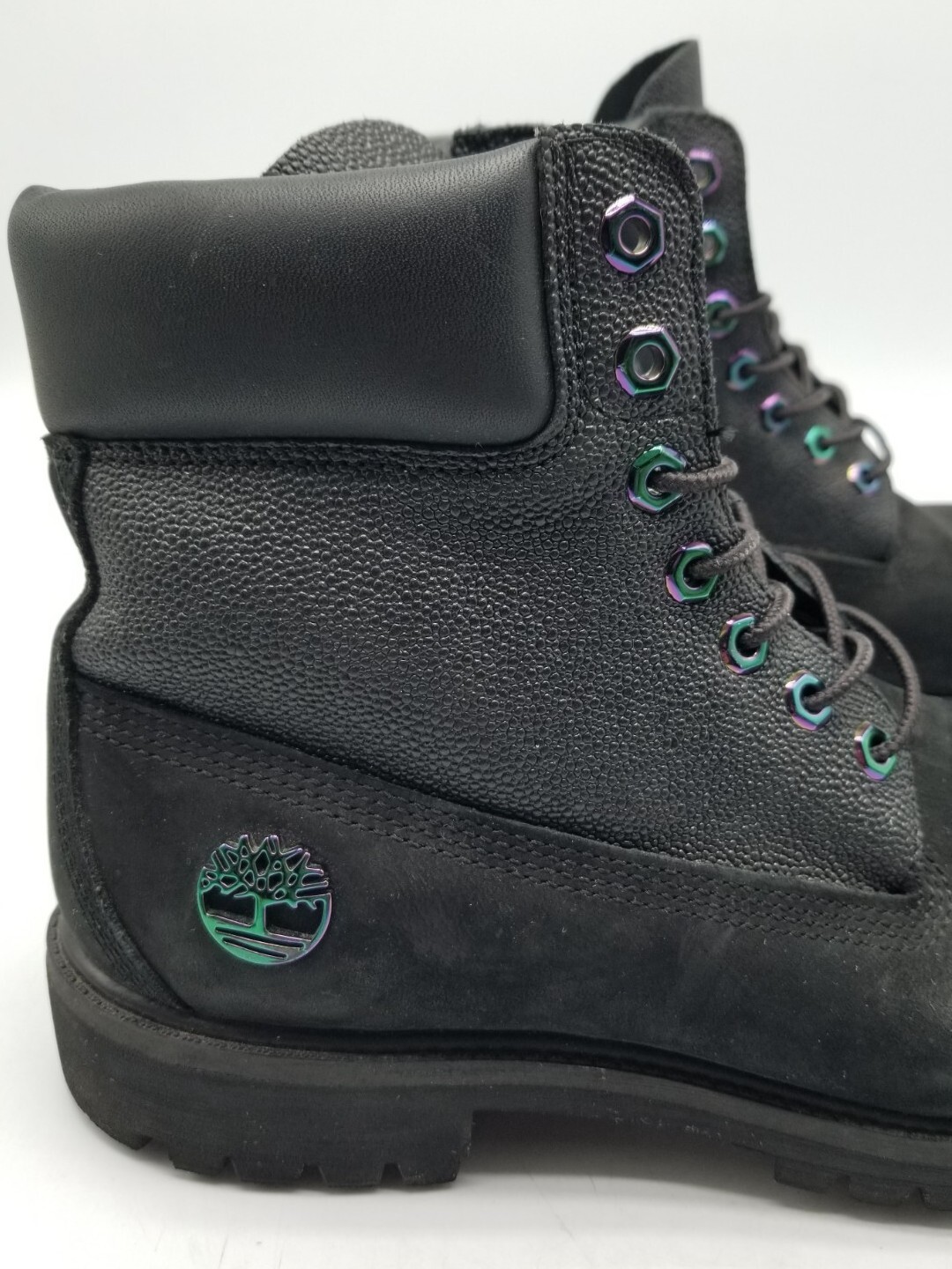 Timberland Boots Limited Release Naughty Black Iridescent Hardware Mens 9M A1|7R These are SAMPLE or probably floor models. Boots have not been worn much. Very light wear to show and most would clean up nicely with proper shoe care materials. Please see pics for details...