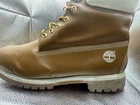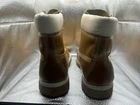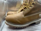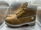 These Timberland boots in size 14 for men feature a waterproof leather upper with a solid wheat color and lace-up closure. The mid-calf shaft style, round toe shape, and combat design make them suitable for various occasions like activewear, casual outings, or workwear. With a durable leather outsole, they offer reliable traction and support, while the M width ensures a comfortable fit. Ideal for all seasons, these rugged boots are a versatile choice for both going out and sports activities.