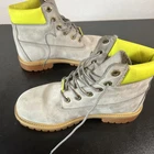 The Timberland X Villa DTLR Grey Stock Premium Boots in size 5 are stylish and functional unisex rain boots. These gray boots feature a waterproof design, making them perfect for rainy days. With a sleek and versatile look, they can be worn by both men and women for various outdoor activities. The collaboration between Timberland and Villa DTLR ensures a high-quality and durable product that is both practical and fashionable.