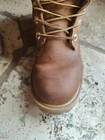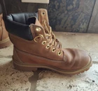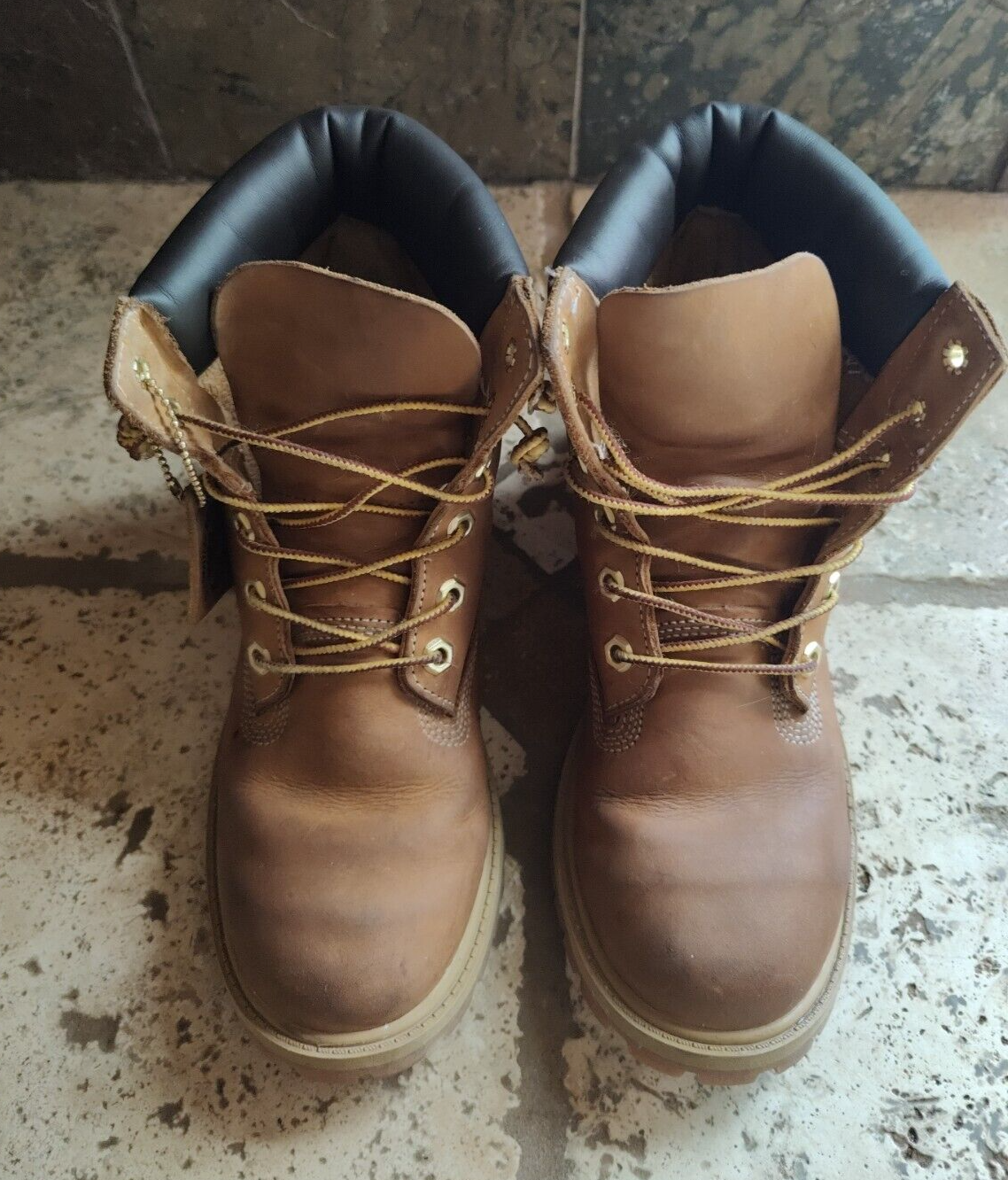 Elevate your style with these Timberland Men's Brown Lace Up Genuine Leather 12909 Boots. Crafted with high-quality leather, these ankle boots are perfect for casual occasions. The round toe and lace-up closure provide both comfort and durability. These boots come in size 5M for men and 6.5 for women. The boots are preowned showing typical signs of wear from use - some wear to the soles and discoloration to the leather. Please see photos for details.