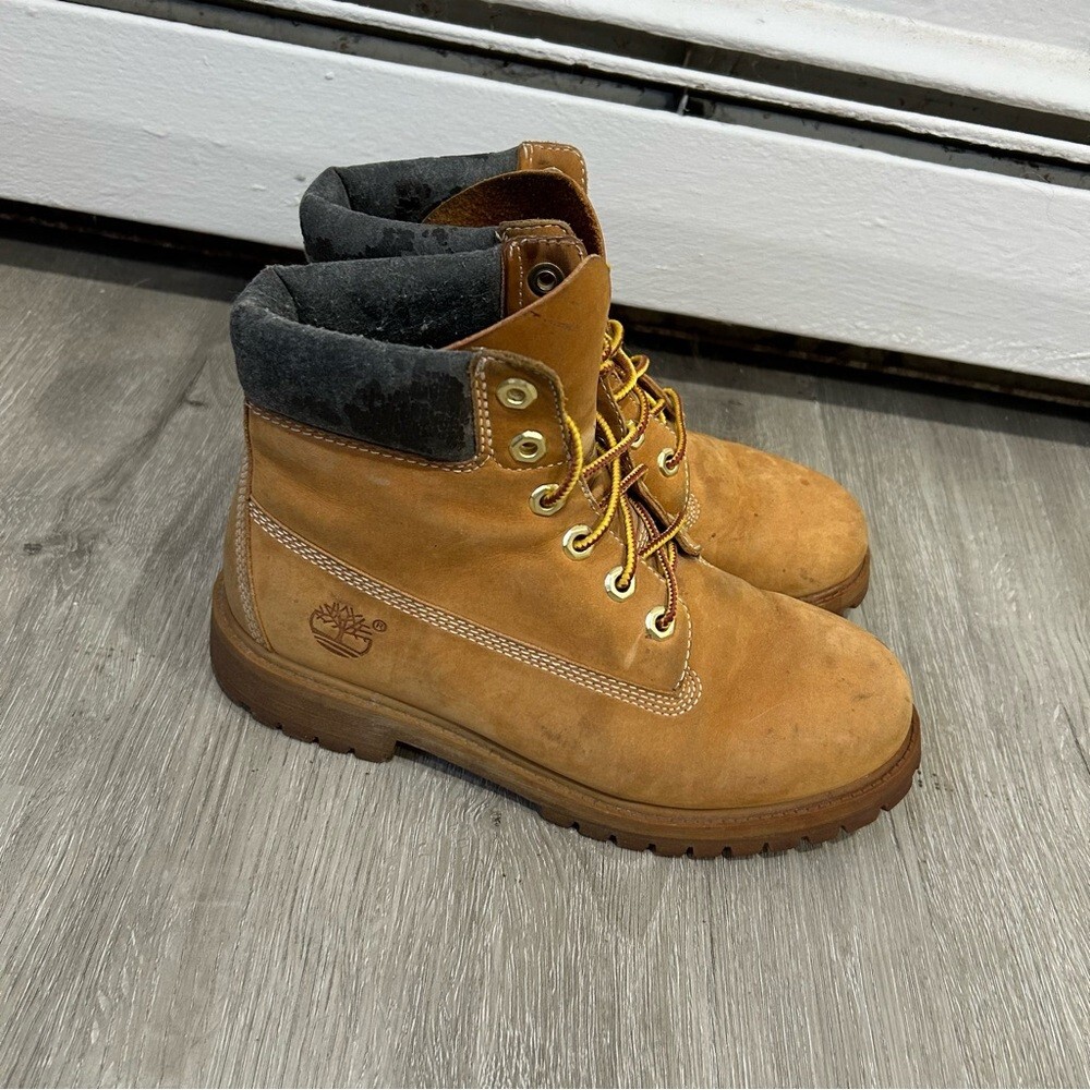 Stylish tan leather boots featuring a black collar. Ideal for any occasion.