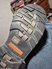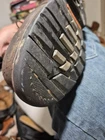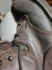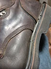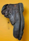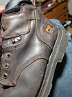 The insole on one boot is not the one that came with it. There are normal scuffs around the noses. One shoelace is missing. Crafted for durability and protection, the Timberland Pro Series Men's ASTM F2413-11 Titan Safety Toe Boots are a robust addition to any workwear wardrobe. Featuring a brown leather upper and a sturdy rubber outsole, these boots are designed to withstand the demands of rigorous outdoor work and harsh indoor environments. The lace-up closure ensures a secure fit, while the steel toe feature offers unparalleled protection. Ankle-high and with a comfortable synthetic lining, these boots are ideal for wear across seasons—fall, spring, and summer. The round toe shape and an M shoe width cater to a comfortable and supportive fit, making them a reliable choice for those in need of both style and function.