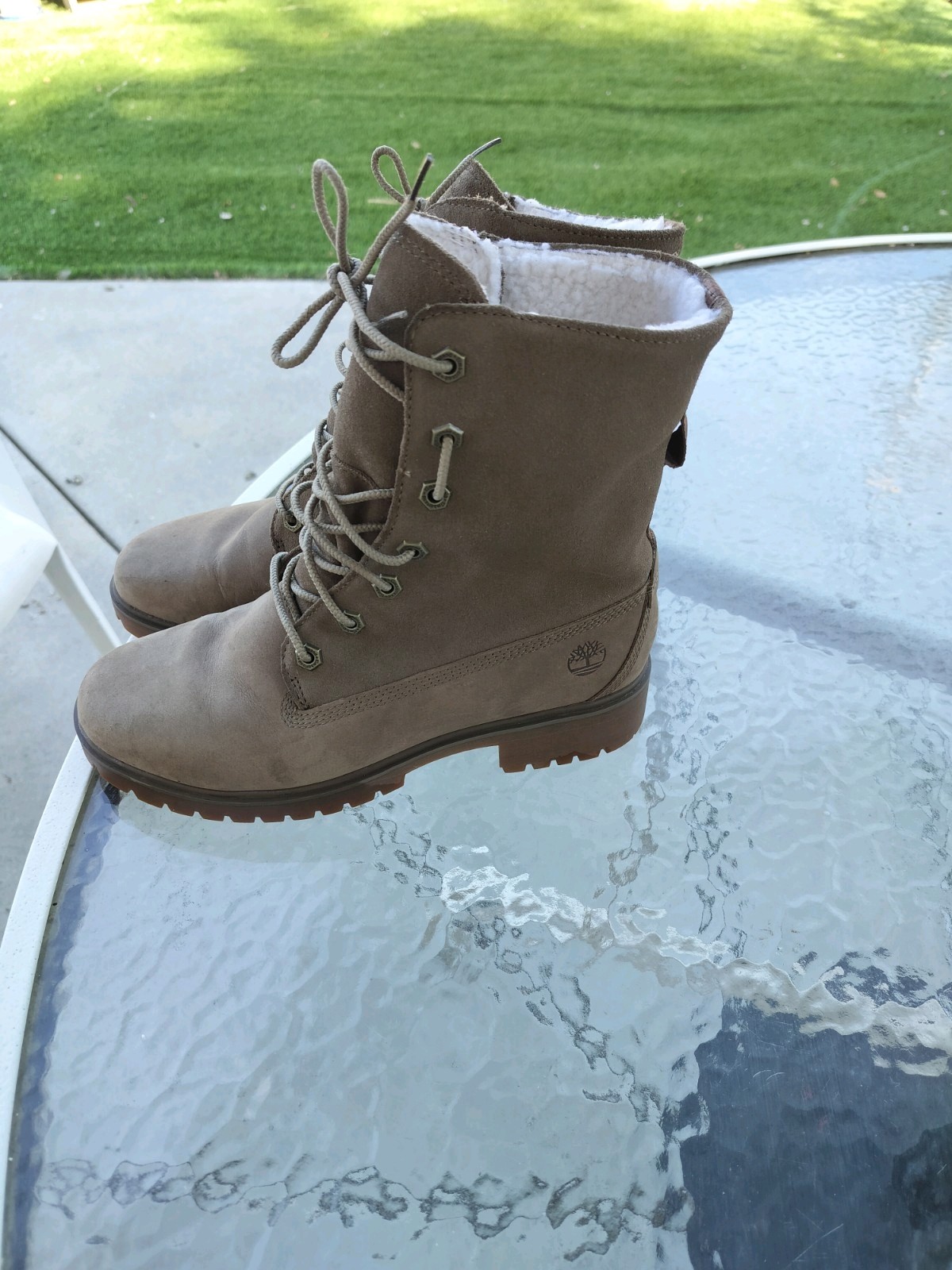 The Timberland Women's Leather Boots in size 7 brown are a stylish and versatile choice for casual wear. With a round toe, lace-up closure, and low block heel, these ankle boots offer both comfort and durability. Made with leather uppers and rubber outsoles, they are perfect for the winter, fall, and spring seasons. The beige color and outdoor theme make them a fashionable and practical addition to any wardrobe.