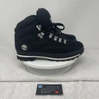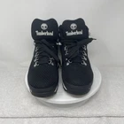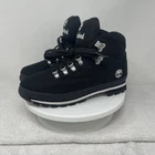 The Timberland Men's Euro Hiking Field Mid Boots in Black are versatile and stylish footwear designed for various occasions including activewear, casual wear, and workwear. Featuring a lace-up closure and ankle shaft style, these combat boots are crafted with a round toe shape and a standard shoe width for comfortable wear. The boots also offer adjustable cushioned comfort with a rubber outsole for traction, making them suitable for all seasons from winter to summer. BARELY WORN