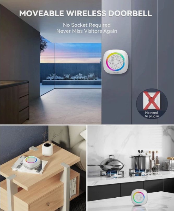 Timbre Inalámbrico 1300 ft con Luz RGB, 60+ Tonos, Volumen Ajustable, Blanco 🔔【Diseño portátil y uso versátil】 El timbre inalámbrico no necesita wifi ni enchufes. El receptor y el transmisor se pueden colocar como prefieras y usar como localizador. Puedes colocar el receptor sobre una mesa o guardarlo en tu bolso, como prefieras. Ya sea en el sótano, el garaje o el jardín, siempre sabrás quiénes son tus visitantes. 🔔【Batería con 36 meses de duración】 Este timbre inalámbrico incluye una función de suspensión. Tras unos minutos de inactividad, el kit de timbre entra en modo de suspensión. Pulsa cualquier botón para activar el receptor. El receptor funciona con 3 pilas AA (no incluidas) y tiene una duración de hasta 36 meses de uso diario, lo que reduce la necesidad de cambiar las pilas con frecuencia. 🔔【Timbre inalámbrico con indicador de luz RGB】El indicador de luz RGB del receptor a pilas parpadea al activarse el transmisor y recibir una señal. El volumen de 110 dB puede alertar a personas con discapacidad auditiva o personas mayores. Puede silenciar el timbre de la puerta principal cuando no necesite tono de llamada y usar la luz RGB para notificarle visualmente cuando alguien esté en la puerta. 🔔【60 Melodías, 5 Niveles de Volumen y Función de Memoria】Este timbre inalámbrico impermeable para exteriores ofrece 60 melodías seleccionables, 5 niveles de volumen ajustables de 0 dB a 110 dB y un modo silencioso para adaptarse a sus preferencias. La función de memoria garantiza que el kit de timbre inalámbrico recuerde la última melodía y el ajuste de volumen seleccionados, incluso en caso de un corte de energía. 🔔【Alcance Inalámbrico de 400 m】El timbre inalámbrico tiene un alcance de hasta 400 m en espacios abiertos sin interrumpir otros dispositivos inalámbricos cercanos. Una señal de radio robusta y estable le garantiza que nunca perderá a una visita. Nota: El transmisor incluido contiene pilas, mientras que el receptor no (requiere 3 pilas AA). 🔔【IP66 Resistente al agua y al polvo】El timbre inalámbrico luce un diseño elegante y contemporáneo, con materiales de alta calidad que protegen el pulsador de temperaturas elevadas e interferencias. El timbre frontal a pilas es resistente al agua (IP66) y lo suficientemente robusto como para soportar entornos extremos. Mantiene el transmisor inalámbrico en condiciones de lluvia y funciona en diversos climas, desde -20 °C hasta 60 °C. SHIPPING: We offer FREE shipping on all orders! We ship within Three business days of payment, usually sooner. We use a selection of shipping services such as UPS, FedEx, USPS etc. We only ship to the lower 48 states, no APO/FPO addresses or PO Boxes allowed. Local pickups and combined shipping options are not provided at this time. PAYMENT: We accept payment by any of the following methods: PayPal Please pay as soon as possible after winning an auction, as that will allow us to post your item to you sooner! FEEDBACK: Customer satisfaction is very important to us. If you have any problem with your order, please contact us and we will do our best to make you satisfied. Thank you for shopping with us!