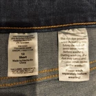 These Time And Tru jeans are mid-rise, size 12 short, blue denim with a straight leg style. They feature a 5-pocket design, zipper closure, and distressed medium wash. Made of polyester, spandex, and cotton, they provide comfort and stretch. Ideal for all seasons, these classic jeans have a regular fit and belt loops. Easy to care for with machine washable garment care.
