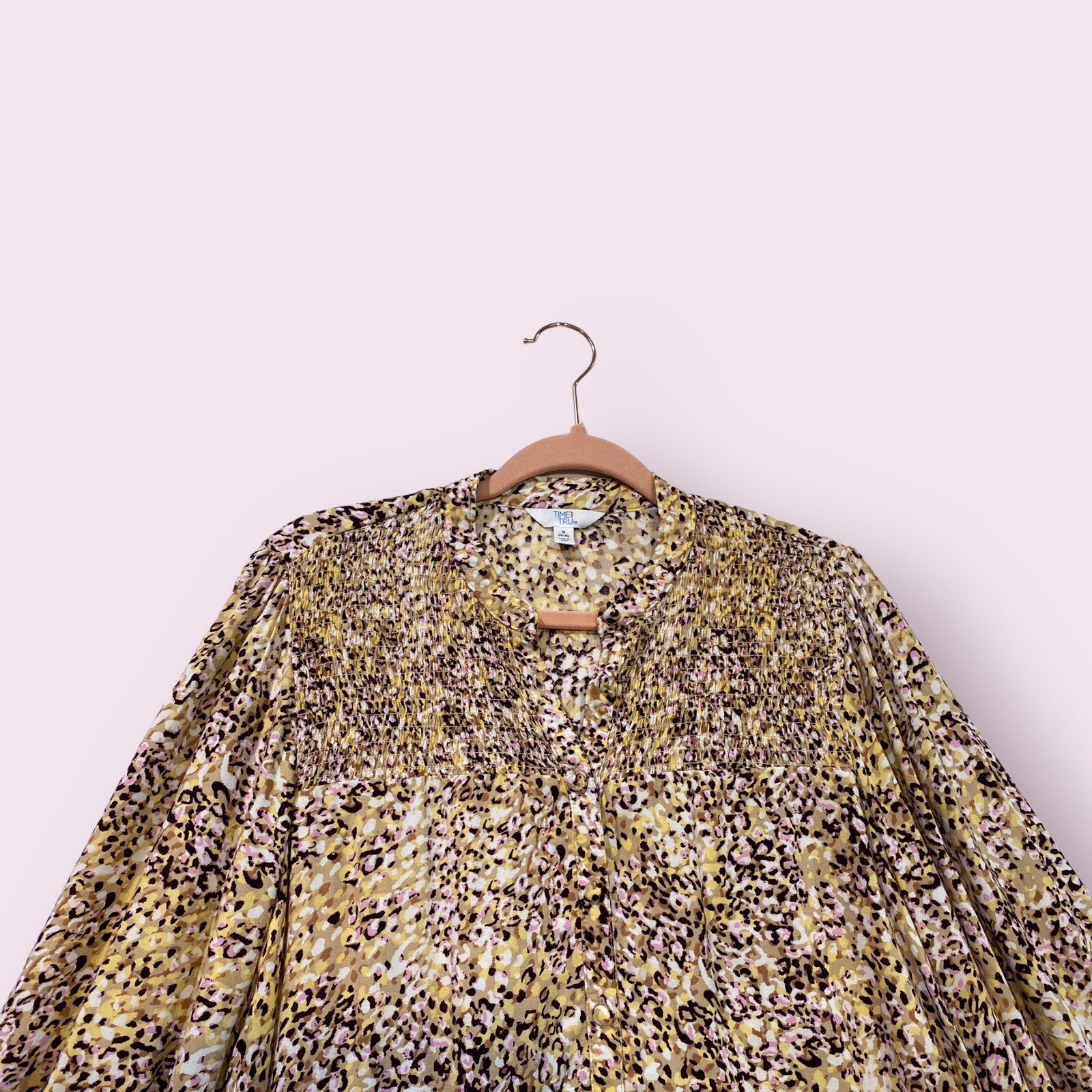 Time And Tru Smocked Animal Print Blouse Top Gorgeous Multicolor Animal Print Size Small 4-6 Armpit to armpit is approximately 20 inches Top to bottom is approximately 27 inches Lightweight & Comfy 100% Viscose Rayon Smocked Balloon Sleeves Button Down Can easily be Dressed Up or Down Super Chic & Summer Ready ! Make sure to Compare Measurements to items you already own & love to ensure a Good Fit before placing an order & for best buying experience ! We Ship out all purchases within 1 business day of payment. Automatic $10 flat Rate Combined Shipping on all items added to cart & paid for together in 1 order. 30 day Free Returns just in case you don’t Love it ! Happy Shopping 😊