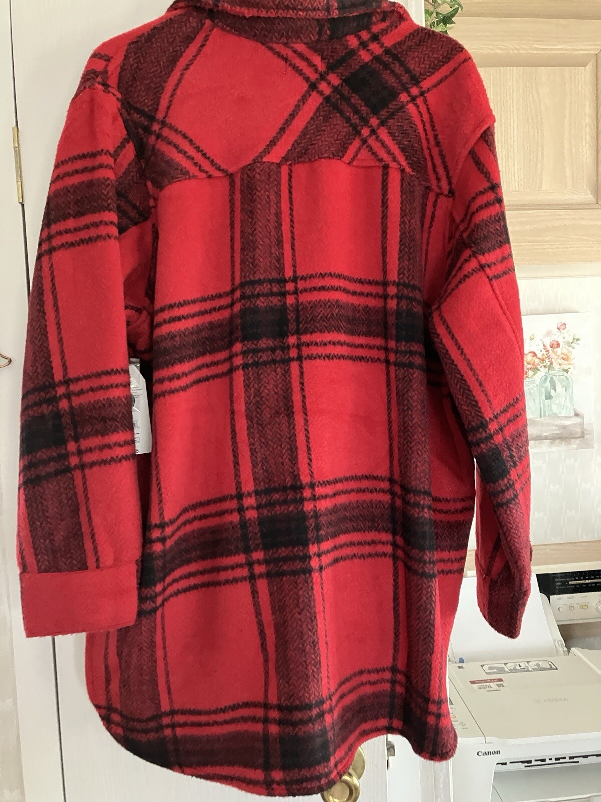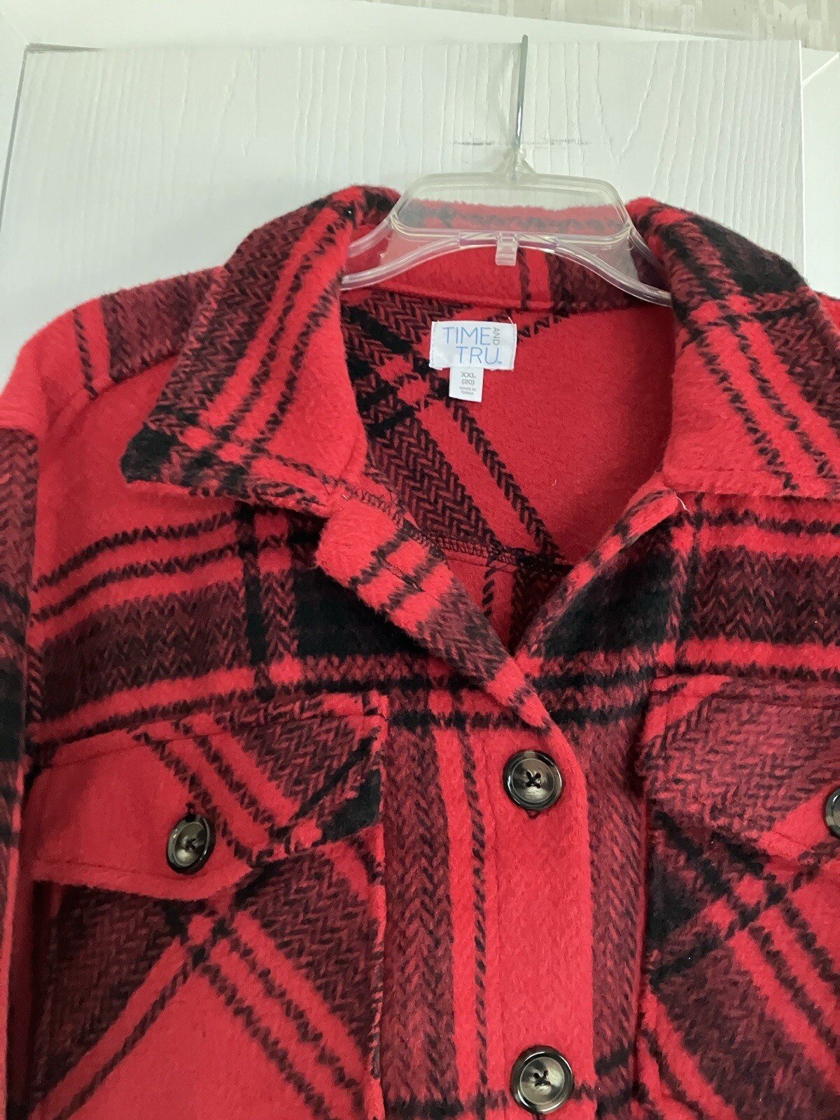 Add a touch of plaid to your wardrobe with this Time And Tru jacket in size XXL 20. The red color is perfect for adding a pop of color to any outfit and the polyester material makes it a durable and long-lasting piece. The jacket features a basic style that is perfect for everyday wear and can be dressed up or down depending on the occasion. This jacket is perfect for women who want a comfortable and stylish piece to add to their wardrobe. It is brand new with tags and has never been worn. The plaid pattern is perfect for the fall and winter seasons and can be paired with a variety of outfits. Don't miss out on adding this jacket to your collection! Sleeves 21” long . Total front is 28” chest is 48”.