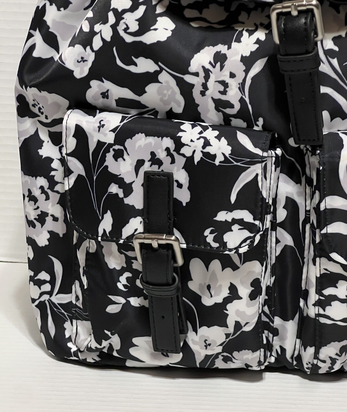 Time & True Backpack Handbag Floral Pockets Drawstring Snap Black White Gray NWT. Condition is New with tags. Shipped with USPS Ground Advantage.
