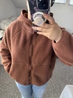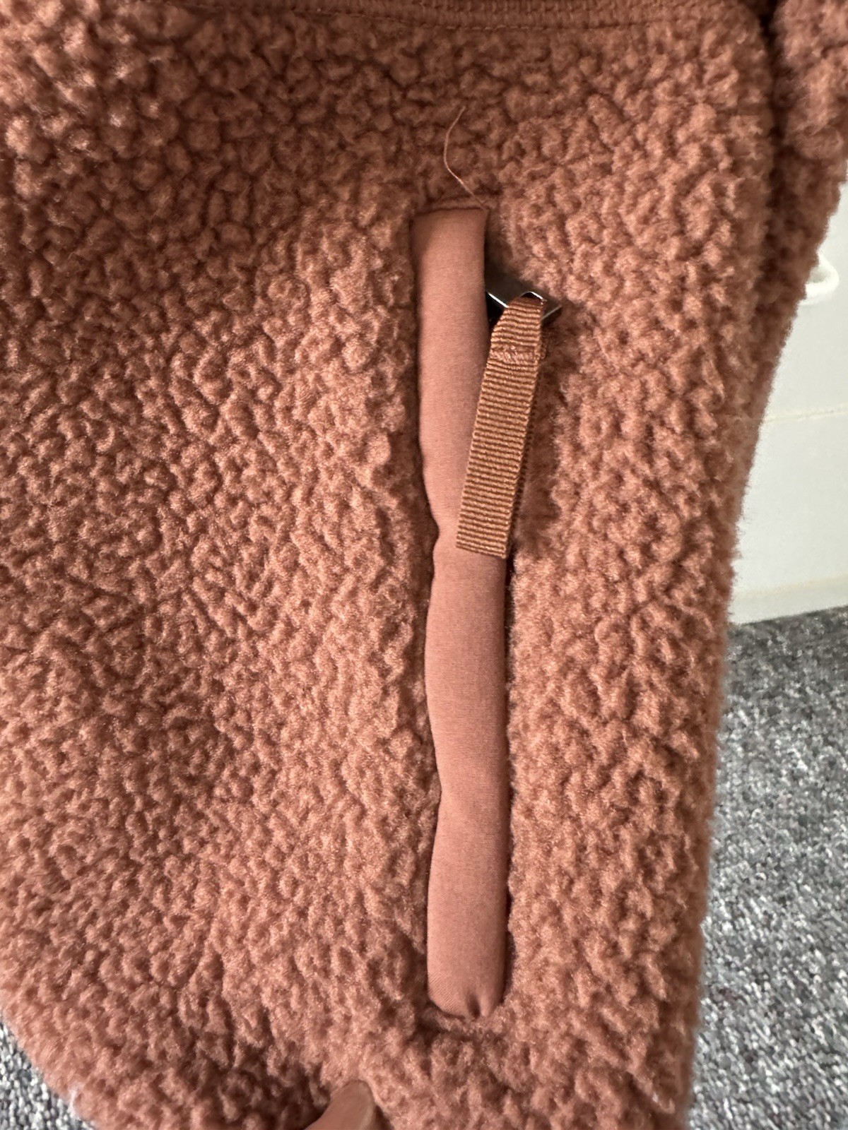 The Time And Tru Fleece Brown Teddy Bear Jacket is a cozy and stylish overcoat designed for both men and women. Made from polyester fleece, this jacket features a zip closure and a trendy brown color that adds a touch of warmth and style to any outfit. The regular fit and size M make it a versatile choice for those looking for a comfortable and fashionable outerwear option.