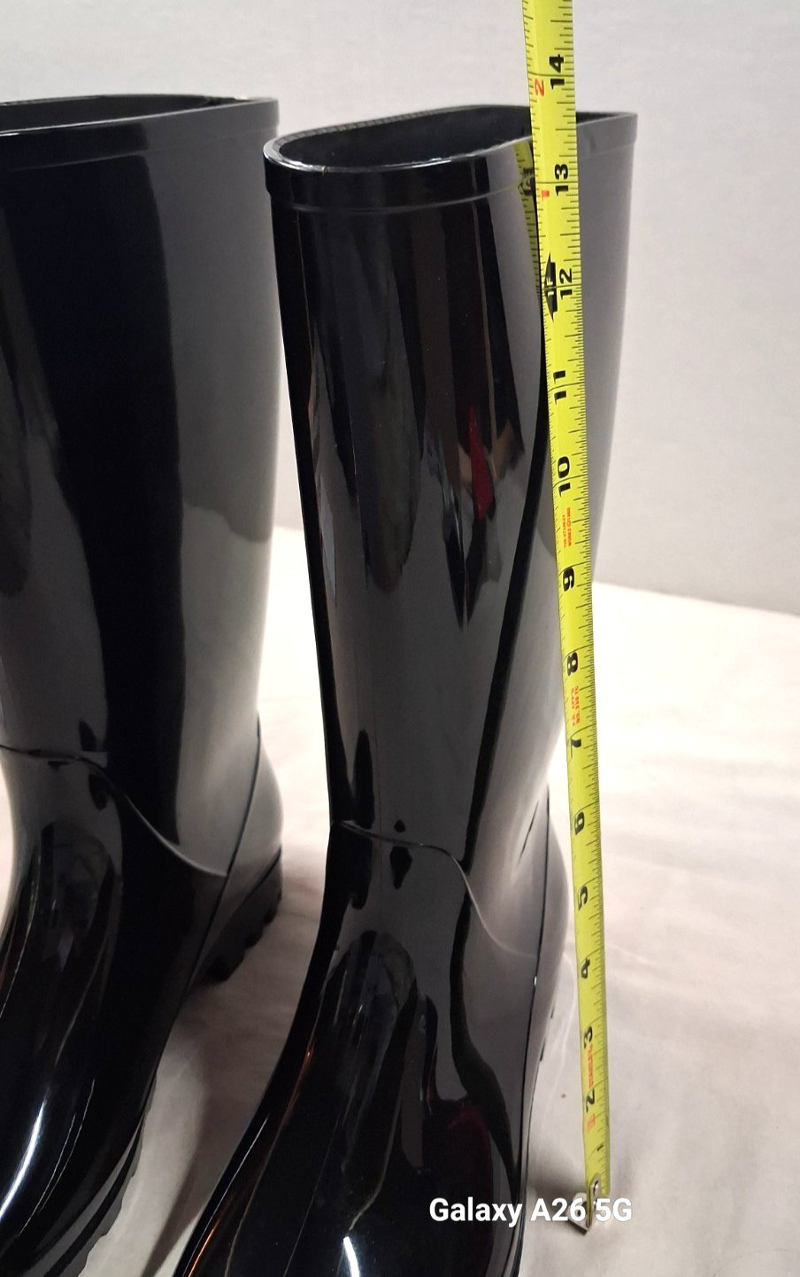 The Time and Tru Rubber Rain Boots in women's size 8 are a stylish and practical choice for casual occasions, specifically designed for rainy weather. With a mid-calf shaft style and pull-on closure, these black waterproof boots feature a round toe shape and low flat heel, making them comfortable and easy to wear. The rubber outsole and lining material provide durability and protection, while the accent of being waterproof adds convenience. Perfect for outdoor activities in the winter season, these boots are a versatile addition to any woman's shoe collection.