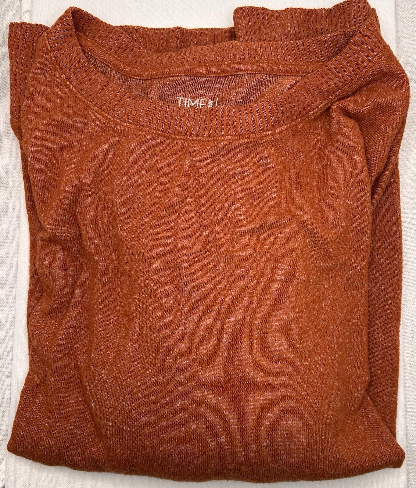 The Time and Tru Women's Long Sleeve Top is a versatile and comfortable. This lightweight burnt orange top features a round neckline, long sleeves with a casual sleeve type, and a pullover closure for easy wear. Measurements Pit to Pit: 29” Length: 27 3/4”