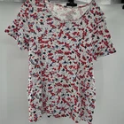 Embrace everyday comfort with the Time And Tru Women's Crew Neck T-Shirt, presented in a delightful 2XL size. Adorned with a charming floral pattern, this multicolored blouse is a perfect addition to your casual wardrobe. The short cap sleeves and classic crew neckline offer a relaxed fit that's both flattering and effortless to style.Crafted from 100% cotton, this T-shirt ensures breathability and ease of care, making it a practical choice for all seasons. Whether you're heading out for a day in the park or just lounging at home, this pull-over piece promises versatility and a touch of floral elegance.