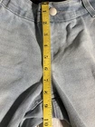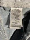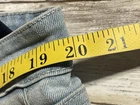 This is a pair of Time and Tru Women's Maternity Straight Jeans in a light blue color, featuring a belly panel for comfort and stretch during pregnancy. The jeans have a 5-pocket design with a high-rise waist measuring 40 inches. They are in a size Large (12-14) and have a straight fit with a 27.5-inch inseam. Made of denim fabric with a light wash, these maternity jeans are designed for all seasons and offer a relaxed and comfortable style for expectant mothers.