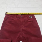 The Time and Tru Women's Mid Rise Bootcut Corduroy Pants in size 8 with a 30-inch waist offer a comfortable and stylish option for casual wear. Made from a cotton blend corduroy fabric, these pants feature a flattering mid-rise waist and a bootcut leg style. With a vibrant red color and stretch feature, these pants are perfect for the winter, fall, and spring seasons. Easy to care for with machine washable instructions, these pants are a fashionable choice for any woman's wardrobe.