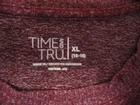 Brand/Item: Time and Tru/Shirt Size: XL (16-18) Description: Burgundy color, crew neck, long sleeve, lightweight, tunic/longer length Condition: No stains, no holes and minimal wash wear Tape measure not included.