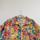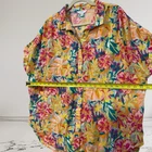 Department: Women Neckline: Collared Material: 53% Linen 47% Lyocell Character: Time And Tru Fit: Relaxed Closure: Button Type: Blouse Pattern: Floral Sleeve Type: Cap Sleeve Features: Lightweight Sleeve Length: Short Sleeve Size: XL Brand: Time And Tru Style: Basic Theme: Classic, Colorful, Hawaiian, Tropical, Travel Outfits, Vacation Outfits, Resort Wear, Cruise Wear Vintage: No Color: Multicolor Accents: Button, Pleated, Oversized Size Type: Regular Country/Region of Manufacture: Bangladesh