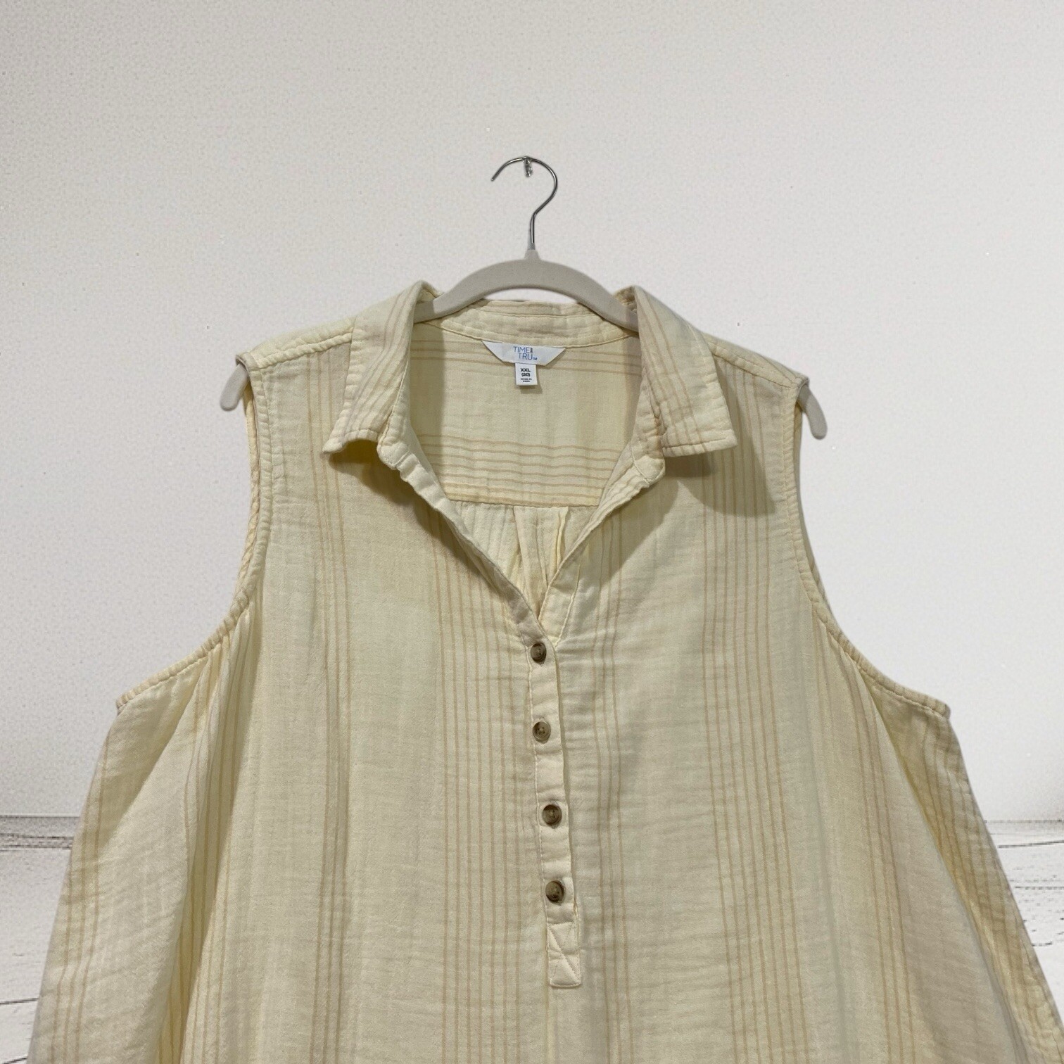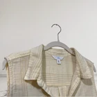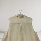This purchase shipped right away and arrived, all neat and tidy, in pretty packaging. It is exactly as presented in the photos and description notes. The price was a nice value for a summer cotton shirt with no signs of wear. There is a abundance of quality clothing to browse thru in this seller's shop.