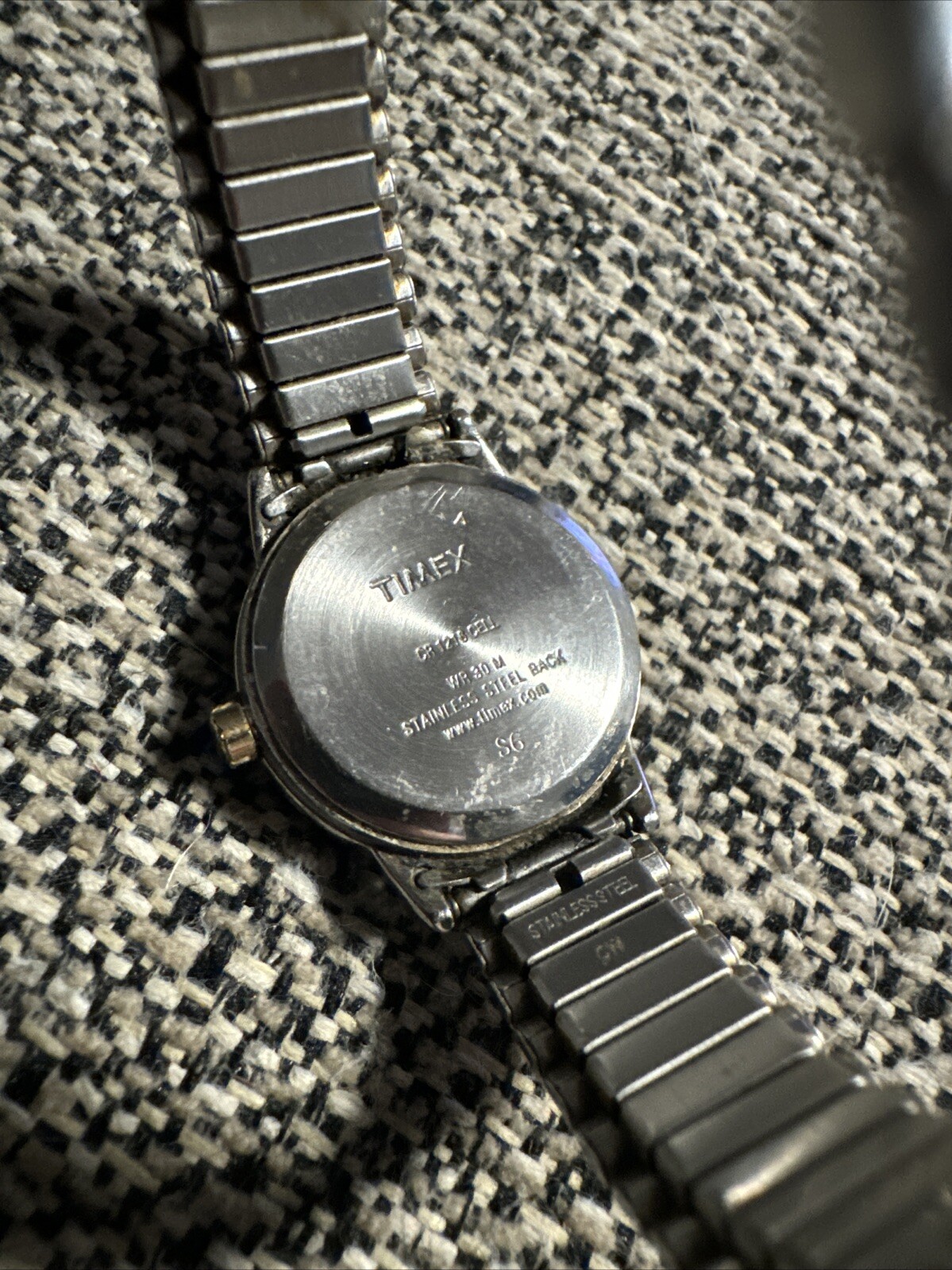 This luxurious Timex wristwatch features a round, white dial with a gold and silver toned expansion band. It is water-resistant up to 30 meters and includes a date indicator. The watch is designed for women and has a bezel and case color of gold. The brand is Timex and it falls under the category of wristwatches in the Jewelry & Watches section of eBay. The watch is analog and has a stylish design that is perfect for any occasion.
