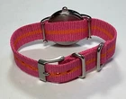 Effortlessly blend style with functionality using the Timex Indiglo Easy Reader wristwatch, designed for those who appreciate a classic touch with modern readability. The 31mm stainless steel case offers a polished finish and is complemented by a vibrant pink and orange nylon strap, making it a comfortable and stylish accessory for any casual or dress occasion. Its white dial is adorned with Arabic numerals and features not only a 12-hour dial but also a 24-hour dial, alongside a central second hand for precise timekeeping. The watch boasts a quartz movement, ensuring accuracy, and is equipped with a handy backlight for clear visibility in low light. With water resistance up to 30 meters, this timepiece combines practicality with elegance, suitable for everyday wear or special events. Note that this model, Reference T2P072, does not come with original packaging, papers, or manual. 1603