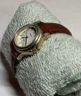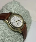 This Timex Ladies Carriage Quartz Watch is a stunning accessory for any outfit. With a beautiful brown leather strap and a gold-tone stainless steel case, this watch is both stylish and functional. The white dial features Arabic numeral indices and a seconds hand, making it easy to read at a glance. This wristwatch is water-resistant and has a push/pull crown for easy adjustment. The snap caseback and two-piece strap add to the durability of the watch. The Timex Carriage model is a classic and versatile watch, perfect for both dressy occasions and casual outings. Need battery