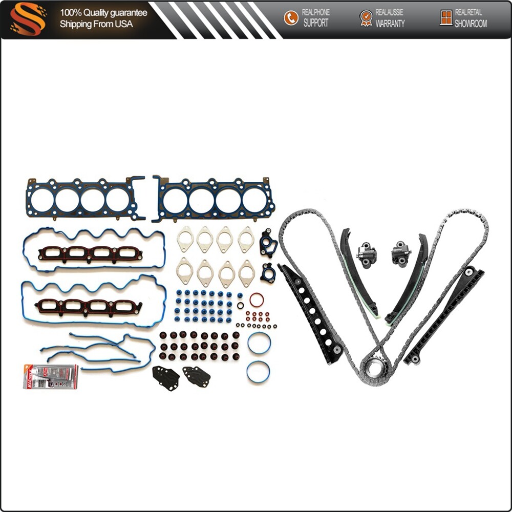 Applications: 2009-2014 Ford Expedition 5.4L 330Cu. In. V8 FLEX SOHC 2007-2008 Ford Expedition 5.4L 330Cu. In. V8 GAS SOHC 2007-2010 Ford F-150 5.4L 330Cu. In. V8 FLEX SOHC 2007-2008 Ford F-150 5.4L 330Cu. In. V8 GAS SOHC 2007-2010 Ford F-250 Super Duty 5.4L 330Cu. In. V8 GAS SOHC 2007-2010 Ford F-350 Super Duty 5.4L 330Cu. In. V8 GAS SOHC 2007-2008 Lincoln Mark LT 5.4L 330Cu. In. V8 GAS SOHC 2007-2008 Lincoln Navigator 5.4L 330Cu. In. V8 GAS SOHC 2009-2014 Lincoln Navigator 5.4L 330Cu. In. V8 FLEX SOHC Package Included: Autodealsparts Timing Chain Kit Head Gasket Set For 07-14 Lincoln Navigator Ford F-150 5.4L Applications: 2009-2014 Ford Expedition 5.4L 330Cu. In. V8 FLEX SOHC 2007-2008 Ford Expedition 5.4L 330Cu. In. V8 GAS SOHC 2007-2010 Ford F-150 5.4L 330Cu. In. V8 FLEX SOHC 2007-2008 Ford F-150 5.4L 330Cu. In. V8 GAS SOHC 2007-2010 Ford F-250 Super Duty 5.4L 330Cu. In. V8 GAS SOHC 2007-2010 Ford F-350 Super Duty 5.4L 330Cu. In. V8 GAS SOHC 2007-2008 Lincoln Mark LT 5.4L 330Cu. In. V8 GAS SOHC 2007-2008 Lincoln Navigator 5.4L 330Cu. In. V8 GAS SOHC 2009-2014 Lincoln Navigator 5.4L 330Cu. In. V8 FLEX SOHC Package Included: x2 Timing Chain (122 links) x1 Crank Sprocket (double row - 21 teeth) x2 Tensioners (left and right) x2 Tensioner Arms (left and right) x2 Guide Rails (left and right) x1 Head Gasket Set Integrated cam sprocket engines (Cam Sprockets/phasers NOT included) (As the picture shown) Additional Information: * These head gasket kit and timing belt kit are just what you need to keep your car in good running order.The head gasket kit and timing belt kit that you will receive in this set are high quality that the dealers and rebuilding shops use everyday. So do not settle for lesser quality parts when it comes to engine repair. * These head gasket kit and timing belt kit are designed for the professional installer. It does not come with any installation instructions. If you do not have a service manual, please consult a professional mechanic prior to installing this kit. * Please refer to the images for an accurate description of the parts included in this listing. Item Specifics Brand AUT Manufacturer Warranty 1 Year Manufacturer Part Number AUT8126410US OE Spec or Performance/Custom OE Spec Interchange Part Number 90391SB,TK6068,TK6054L,HS26306PT-2 Other Part Number 5L3Z-6268-A,F6AZ-6L266-CA,F85Z-6K255-AA,HS54400A,283847 Kit Or Single Part Kit Kit Parts Included Timing Chain, Head Gasket Set,Guide Rail, Crank Sprocket Superseded Part Number 4L3Z-6M256-AA,1L3Z-6L266-AA,2L1Z-6K297-AA,F85Z-6M274-AA,205640 Fitment Type Direct Replacement Payment We accept multiple payment methods Shipping 1. We only ship to confirmed paypal addresses, your paypal address must match your shipping address. 2. All domestic orders will be shipped via USPS, UPS or Fedex from our US warehouse and usually arrives to your door in about 2-7 business days. 3. If you have not received your shipment within 15 days from payment , please contact us. We will track the shipment and get back to you as soon as possible with a reply. 4. Local pick up is not available. Returns All of our brand new items come with a 30-days money-back guarantee. Contact Us If you have any question, please contact us. Warning Please check carefully for the fitment before order, thank you. Autodealsparts DESCRIPTION PAYMENT SHIPPING RETURN POLICY CONTACT US Shop Category Store Home AC Compressor Mirrors Oxygen Sensor Roof Rack Engine Repair Kit Engine Air Intake & Exhaust Tonneau Cover Lawn Mower Accessories Car Tools Truck Bed Storage Box Oil Pump & Water Pump Door Handle Running Board Motor Transfer Case Motor Blend Door Actuator Center Console Armrest Secondary Air Pump Windshield Wiper Motor LED headlight Assembly Dipstick Horns complete struts fog lights Pillar Posts Fuse Holder Box winch Shocks Struts Struts & Suspension Kit & Hubs Window Visors Air suspension valve solenoid Fuel Injector Fuel Pump Throttle Body Window Regulator Turbo Turbocharger Window switch CV AXLE Coolant Overflow Tank Mud Flaps Bumper Side Marker Lights ignition Wing and Spoiler cv-2 Mass Air Flow Sensor-MAF Coilover snorkel kit Jeep lift supports Adj. Control Arm VVT Variable Valve Timing Door Lock Actuator Chainsaw Chain Car Moulding Cover Trim Steering Wheel Hole Adapter Golf Cart Accessories Bug Shield Motorcycle Accessories Ramps Cylinder Piston Gasket Kit Valve Cover Valve Rocker Arm Cylinder Head Cover Crankshaft Drive Clutch Radiator Shutter Garden Water Pump Tire Pressure Sensor Camshaft Hydraulic Lifters Dash Board Cover Fuel Tank Accessories Tensioner Sun Visor Power Steering System RV Third Brake Light Strut Mount Coil Springs Brake System Parts ◈ Brake Calipers ◈ Brake Drums & Brake Shoes Electric Dump Tarp Motor Clock Spring Air Dryer Power Brake Booster Leaf Spring Shackle Kit Other Hot Item Door Handle Interior Right Passenger RH for Chevy GMC Tahoe Suburban Inside USD 12.09 Tailgate Handle Rear Latch Cargo Door Handle for Toyota Pickup 1989-95 Outside USD 9.69 For 2014-2015 GMC Sierra 1500 Chrome Amber Pair Headlights Assembly USD 175.19 For 1997 1998 1999 2000 2001 Honda CRV Factory Style Spoiler Wing w/LED ABS USD 43.19 Roof Rack Rail End Cover Shell Replacement For 03-12 Toyota RAV4 AX30 Wholesale USD 16.91 New List Item For Case IH 1370 1470 1570 2294 2470 2670 4490 4690 A4195 Turbo Turbocharger US USD 120.79 Set of 6 Ignition Coils For Volkswagen Golf 2.8L 2002-2005 UF404 New USD 59.69 For 2013-2015 Lexus ES350 ES300h Black Housing LH + RH LED Headlights Assembly USD 250.99 Fits 2002-2004 Toyota Camry Chrome Headlights Assembly Headlight Corner Pair Set USD 77.49 Remote Car Fob + Key Fits Honda Odyssey 3.5L 2005-2010 OUCG8D-399H-A 4bottons USD 23.09 Picture Picture Picture Timing Chain Kit Head Gasket Set For 07-14 Lincoln Navigator Ford F-150 5.4L Applications: 2009-2014 Ford Expedition 5.4L 330Cu. In. V8 FLEX SOHC 2007-2008 Ford Expedition 5.4L 330Cu. In. V8 GAS SOHC 2007-2010 Ford F-150 5.4L 330Cu. In. V8 FLEX SOHC 2007-2008