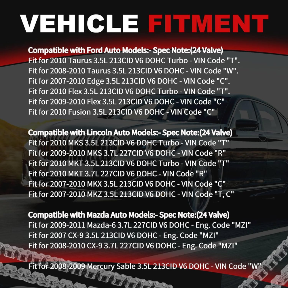 WHY OUR CUSTOMERS KEEP SHOPNG WITH US ✅All items are covered by manufacturer warranty. ✅FAST FREE SHIPPING. ✅Most orders ship within 1 business day with Tracking Number. Customer also can choose two-day or expedited shipping. ✅100% customer satisfaction is backed by a 30-Day Money Back Guarantee for New items and a 30-Day Money Back Guarantee for Recon. FEATURES 1 Manufactured with Precision to Meet OE Standards IATF16949 Certified. 2 High Quality & Brand New 3 Two Year Warranty. 4 After Market Replacement 5 Customers Service Center Will Deal with Pre-sale and After-sale Problems In Time Timing Chain Kit with Tools Head Gasket Bolts Kit for Ford Lincoln Mazda 3.5L V6 WHY OUR CUSTOMERS KEEP SHOPNG WITH US ✅All items are covered by manufacturer warranty. ✅FAST FREE SHIPPING. ✅Most orders ship within 1 business day with Tracking Number. Customer also can choose two-day or expedited shipping. ✅100% customer satisfaction is backed by a 30-Day Money Back Guarantee for New items and a 30-Day Money Back Guarantee for Recon. FEATURES 1 Manufactured with Precision to Meet OE Standards IATF16949 Certified. 2 High Quality & Brand New 3 Two Year Warranty. 4 After Market Replacement 5 Customers Service Center Will Deal with Pre-sale and After-sale Problems In Time 6 Factory Affordable Price with High Quality Service: Return/ Replace/ Offer Technical Support. FITMENTS For FORD: 2010-2010 for Ford Taurus 3.5L 213CID V6 DOHC Turbo - VIN Code "T" 2008-2010 for Ford Taurus 3.5L 213CID V6 DOHC - VIN Code "W" 2007-2010 for Ford Edge 3.5L 213CID V6 DOHC - VIN Code "C" 2010-2010 for Ford Flex 3.5L 213CID V6 DOHC Turbo - VIN Code "T" 2009-2010 for Ford Flex 3.5L 213CID V6 DOHC - VIN Code "C" 2010-2010 for Ford Fusion 3.5L 213CID V6 DOHC - VIN Code "C" For LINCOLN: 2010-2010 for Lincoln MKS 3.5L 213CID V6 DOHC Turbo - VIN Code "T" 2009-2010 for Lincoln MKS 3.7L 227CID V6 DOHC - VIN Code "R" 2010-2010 for Lincoln MKT 3.5L 213CID V6 DOHC Turbo - VIN Code "T" 2010-2010 for Lincoln MKT 3.7L 227CID V6 DOHC - VIN Code "R" 2007-2010 for Lincoln MKX 3.5L 213CID V6 DOHC - VIN Code "C" 2007-2010 for Lincoln MKZ 3.5L 213CID V6 DOHC - VIN Code "T, C" For MAZDA: 2009-2011 for Mazda-6 3.7L 227CID V6 DOHC - Eng. Code "MZI" 2007-2007 for Mazda CX-9 3.5L 213CID V6 DOHC - Eng. Code "MZI" 2008-2010 for Mazda CX-9 3.7L 227CID V6 DOHC - Eng. Code "MZI" 2008-2009 for Mazda Mercury Sable 3.5L 213CID V6 DOHC - VIN Code "W" OEM NUMBER HS26487PT, HGS4198, ES71320 AT4Z-6306-A, 7T4Z-6256-A, 7T4Z-6268-CA, AT4Z-6268-C, 7T4Z-6K254-BA, 7T4Z-6K254-AA, BA5Z-6L266-B, BA5Z-6K255-A, BA5Z-6B274-A, AT4Z-6K297-A, AT4Z-6K297-B 303-1248, 303-1530 ITEM INCLUDES Multiple Layers Steel (MLS) Head Gasket Valve Cover Gasket Valve Stem Seals Intake Manifold Gasket Exhaust Manifold Gasket Front Camshaft Seal O-rings Other Small Gaskets 16 Cylinder Head Bolts 1 Primary Timing Chain (202 links), 2 Secondary Timing Chains (upper), 2 Cam Sprocket with bolts (25 teeth - exhaust), 1 Crank Sprocket (23 teeth), 1 Guide Rail (left - fixed - long),1 Guide Rail (left - fixed - short),1 Guide Rail (right - fixed - short),1 Guide Rail (right - tensioner rail), 1 Primary Tensioner, 1 Tensioner (upper - left),1 Tensioner (upper - right), 1 Water Pump with gasket Camshaft Holding Tool Kit FREE RETURN If you are unhappy with your purchase for any reason, you can return it to us in an un-used condition in the original packaging within 30 days of purchase and we'll give you a refund or exchange. The refund/Exchange will not include postage/eBay costs. Please note you MUST contact us to obtain a Return Authorization Number before returning any part. Any parcel without the Return Authorization Number will be rejected *If your item is faulty or was incorrect, you must contact our sales representative before returning the parcel and we will endeavour to solve the problem effectively. Video or picture is required to show the item 、condition before we issue the Return Authorization Number. * Professional installation is highly recommended (No Instruction Included) * For any needs please contact us Item Specifics Brand : susucar Type : Timing Chain Kit with Head Gasket Kit OE/OEM Part Number : HS26487PT, HGS4198, ES71320, 303-1248, 303-1530 Interchange Part Number : AT4Z-6306-A, 7T4Z-6256-A, 7T4Z-6268-CA, AT4Z-6268-C Superseded Part Number : 7T4Z-6K254-BA, 7T4Z-6K254-AA, BA5Z-6L266-B, BA5Z-6K255-A Other Part Number : BA5Z-6B274-A, AT4Z-6K297-A, AT4Z-6K297-B Compatible Makes : FORD , LINCOLN , MAZDA Compatible Models : EDGE, FLEX, FUSION, TAURUS , MKX, MKZ, CX-9 Compatible Years : 2007-2010 Compatible Engine : 3.5L 3496CC 213CID V6 DOHC, (24 VAVLE) Items Included : Cylinder Head Gasket Bolts Set,Timing Chain Kit,Timing Tools Material : Multiple Layers Steel (MLS) Head Gasket Fitment Type : Direct Replacement OE Spec or Performance/Custom : OE Spec About My Store : 100% SATISFACTION, 100% Source manufacturer Manufacturer : SUSUCARpartsWhosale Note : Please contact us to confirm the application before Purchase Manufacturer Warranty : 2 Years Why choose US? Susucar is passionate about maintaining our culture of demonstrating value and building personal client relationships in perfecting the client experience. We are also a culture of giving back to the community and preserving our precious planet - a passion that runs deep throughout our Company. Every single item we sell goes through thorough inspection processes to make sure it works perfectly for you. If for any reason you are not satisfied with our product, please shoot us a message. We will do everything in our power to make things right Returns and Exchanges Hassle Free Returns! All our new and refurbished products come with a 30-Day Free Return Policy. If you would like to return your item and you are within 30 days of the purchase, and it is still in its original condition, you can request a return label and return the item by contacting us through eBay messaging. We offer Free Returns in the USA and will provide y