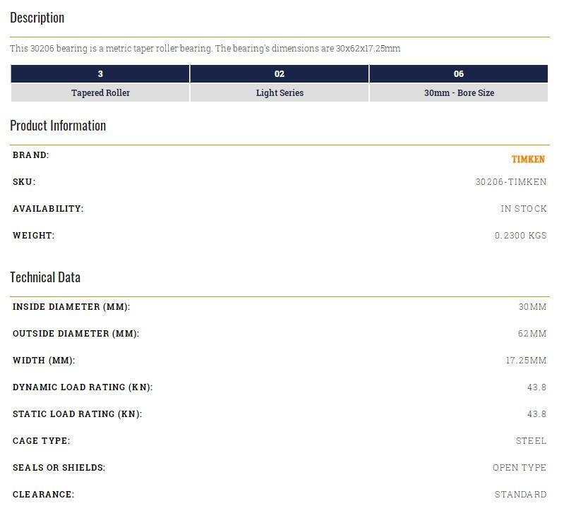 Timken 30208 Taper Roller Bearing 40x80x19.75mm Single Piece New