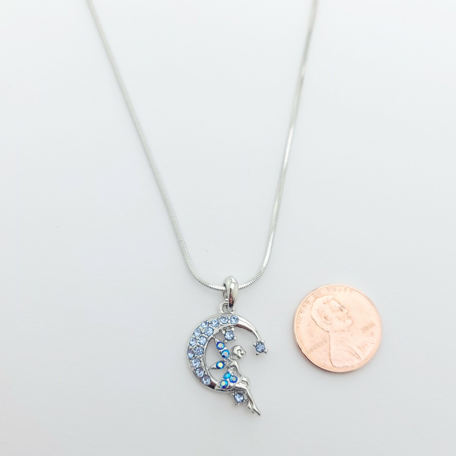 Tinkerbell Moon Blue Pendant Fairy Mad With Swarovski Crystal Charm Necklace Dimension: 1.18" (30 mm) x 0.67" (17 mm) With 16 inch / 41 cm chain lobster clasp Condition: A brand-new, unused, and unworn item Jewelry box included, ready for gift giving! Perfect Birthday, Christmas, Valentines day and anniversary gift for your loved ones, or a gift for yourself!. This elegant high quality necklace is awesome for any occasion or everyday wear and also great value for money. A high polish finish completes this great look. This necklace will make a wonderful gift for your loved ones, or a gift for yourself! Please drop us a message if you have any inquiry. We will try our best to help you out! Your Best Value For Beautiful High Quality Jewelry! Items are measured entirely include the bail, earrings include the hooks, the bracelets and necklaces to its last link. Positive feedback is greatly appreciated. If you are unhappy for any reason please do not leave negative or neutral feedback and allow us the opportunity resolve all issues. We are very fair and easy to deal with. The crystals of this finished product are being manufactured by D. Swarovski & Co. “Swarovski” is registered trademark of Swarovski AG, but there is no relationship between any Swarovski company and the manufacturer of this product. PAYMENT Payment should be made within seven days since the winning of the first item. RETURNS If you are not 100% happy with the item you received, you can return it in original packaging and condition within 30 days of receiving your package.