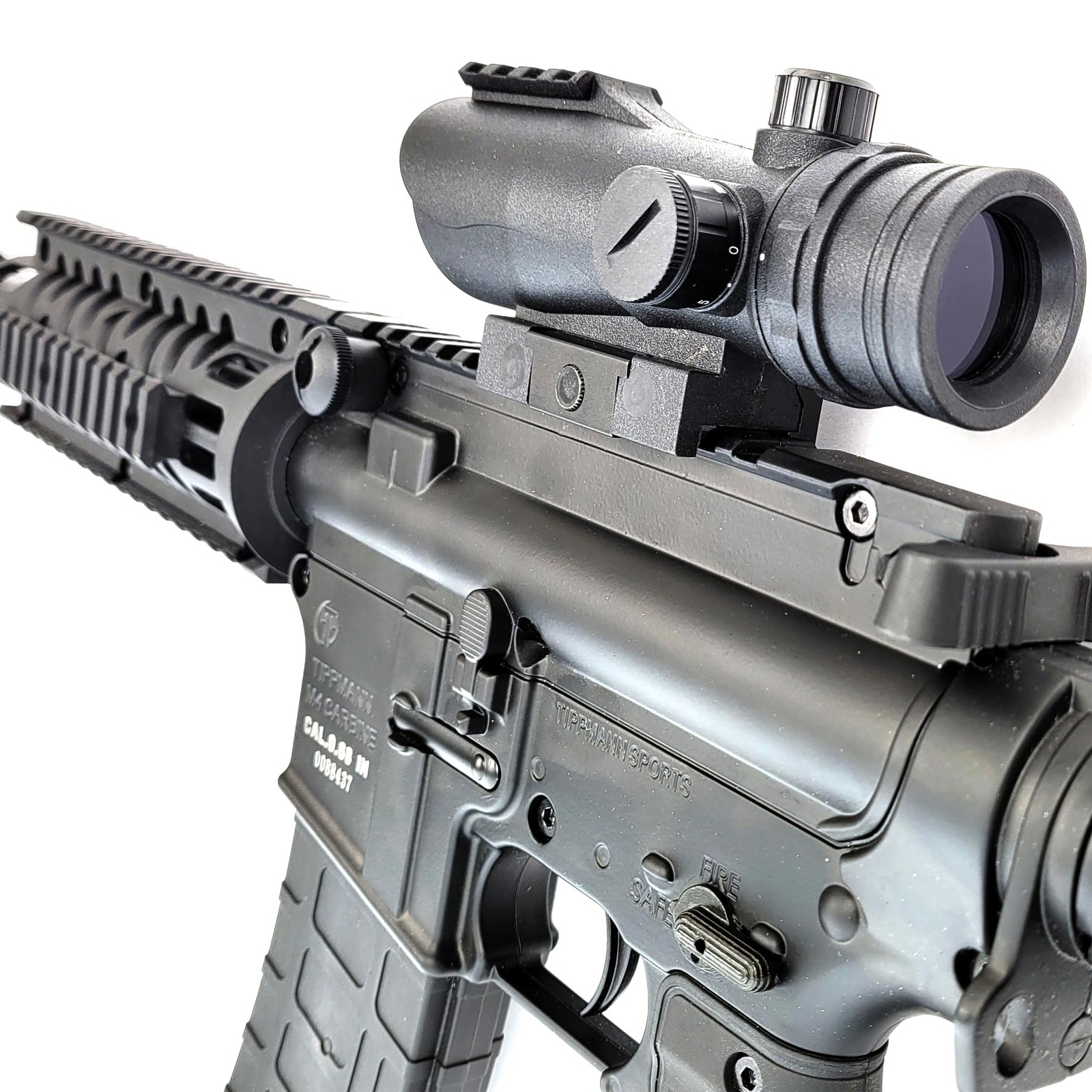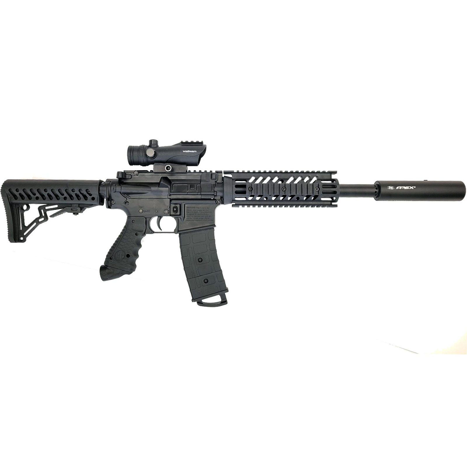 The Tippmann TMC Sniper paintball marker is for those that like to shoot long range. We have combined several popular options to not only make the Tippmann TMC paintball gun shoot great, but to look awesome as well. We have been selling this setup in our brick and mortar store for a while and it catches everyone's eye - They all want to hold it and buy it. Included: Tippmanan TMC paintball marker black Empire Apex 2 barrel 18 inch Valken RDA30 red dot sight black All standard Tippmann TMC parts in box (you get everything a normal TMC has also) Basics about the Tippmann TMC: This is the latest MagFed gun that is an extremely authentic AR Styled Tactical Carbine Marker! Go MagFed or traditional loader and get the best of both worlds in one awesome package. The TMC can be fully accessorized giving the player more unique options for Tactical Games, combining functionality with the world renowned Tippmann reliability for the next standard in MagFed Products. Features: Solid Black in color Includes two 20 round spring driven magazines Full pneumatic marker Proven high performing in-line bolt system Dual feed option: can be hopper or magazine fed Extremely authentic AR look and feel Fully functional charging handle Easy-pull trigger Over molded rubber grip 12” high performance barrel with muzzle break Bottom mounted asa Internal stainless steel gas line 2 position external selector 5 position collapsible stock Durable aluminum receiver Front and rear adjustable sights Integrated sling mounts AR-15 style shroud with built-in 4 sided picatinny rails